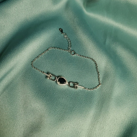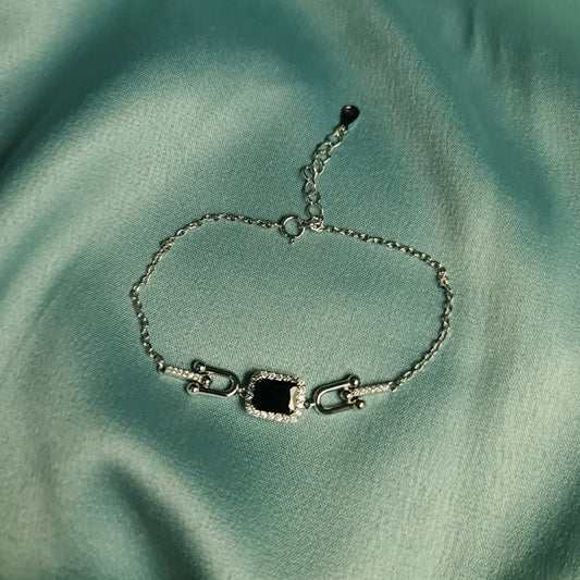 Drop Black stone 925 Sterling Silver Bracelet