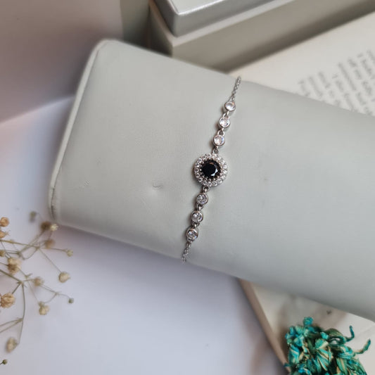 Round Black stone 925 Sterling Silver Bracelet