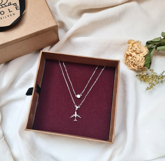 925 Italian Silver Ghazal Necklace with zircon stone - Sky Blue