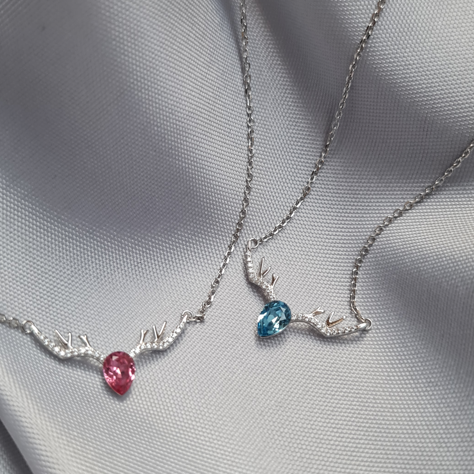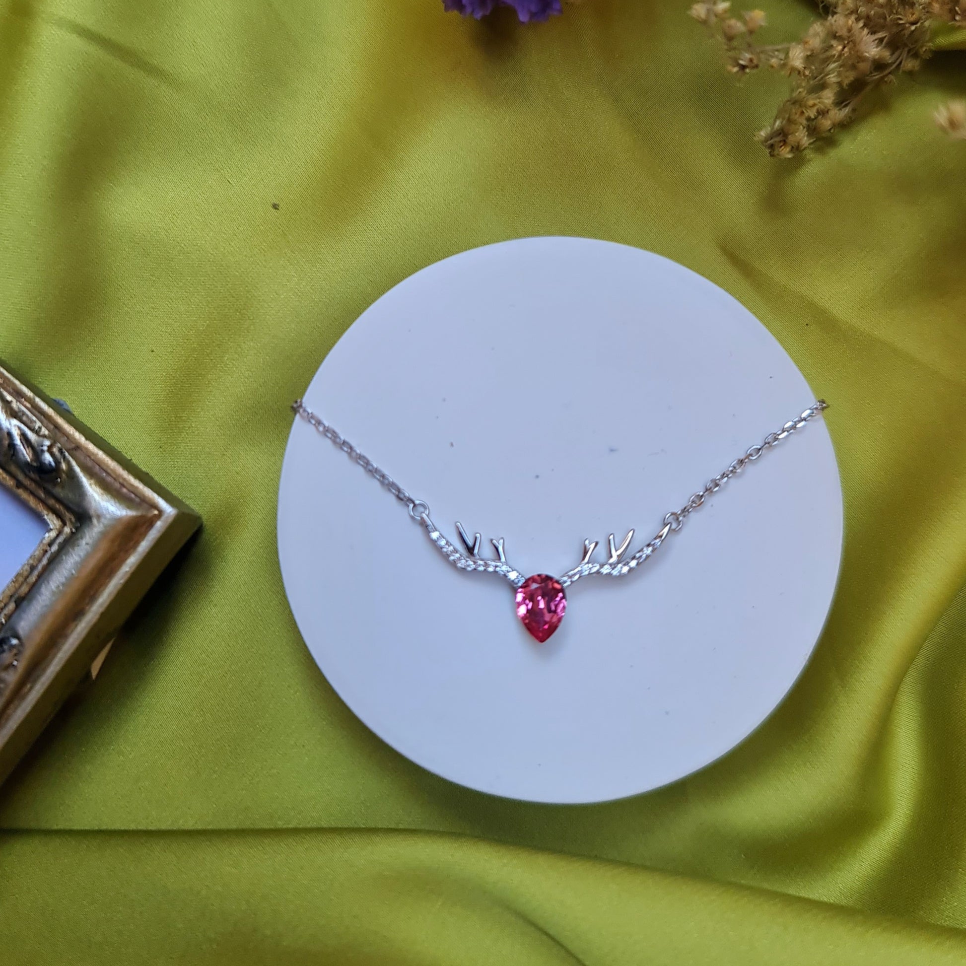 925 Italian Silver Ghazal Necklace with zircon stone - Pink