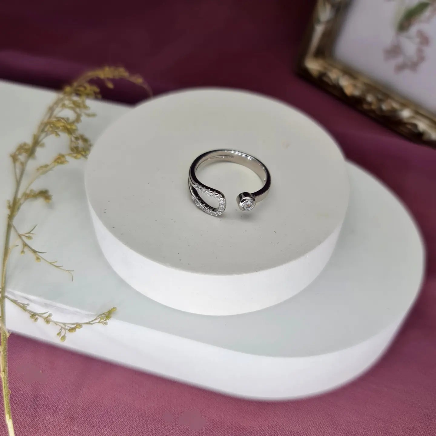 Create a timeless and luxurious look with this exquisite 925 Zircon Sterling Silver Adjustable Ring.