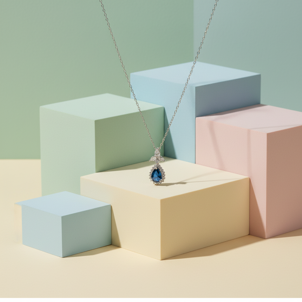 Blue Zircon Stone 925 Italian Silver Necklace
