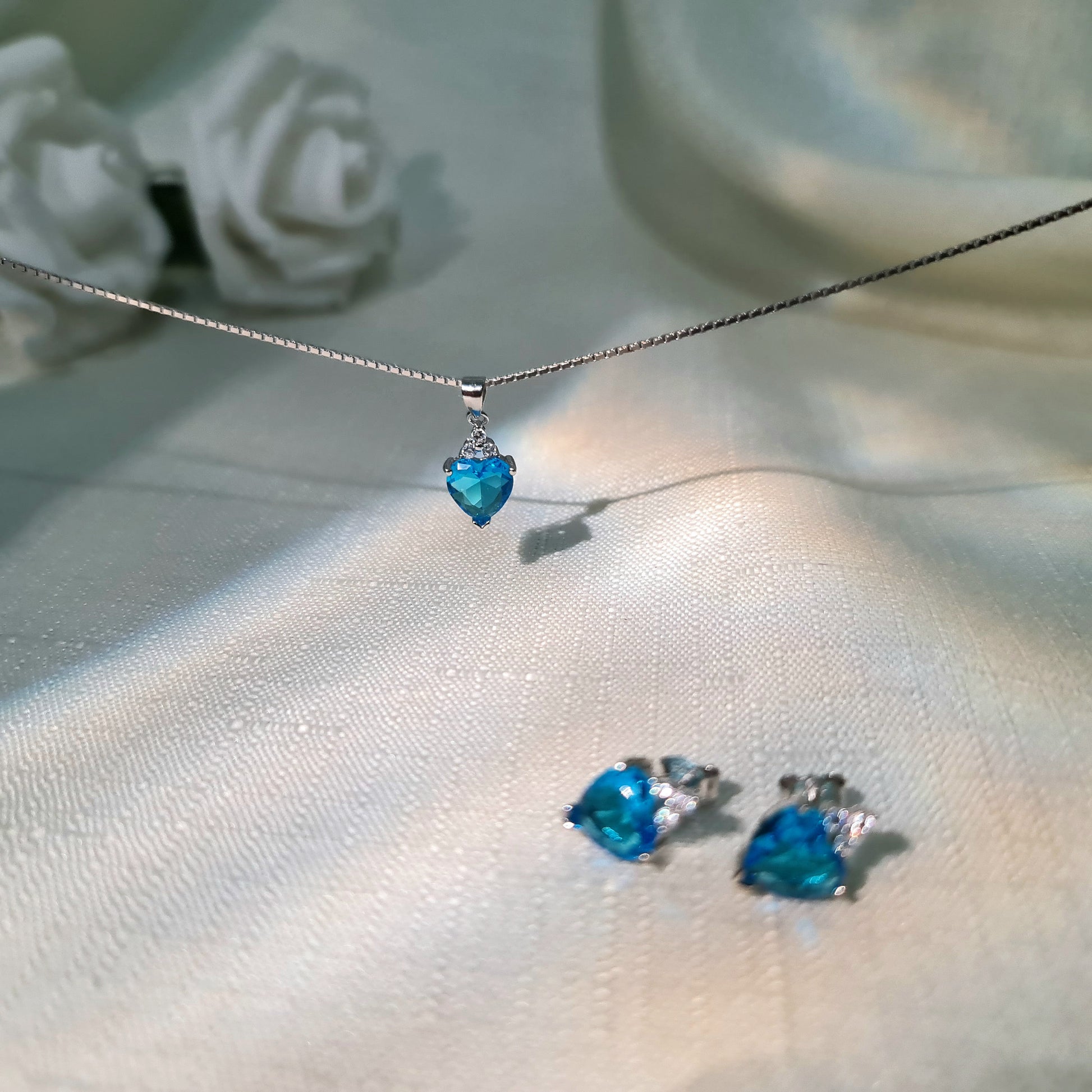 Cyan Heart Stone Silver Set - 2 Pieces