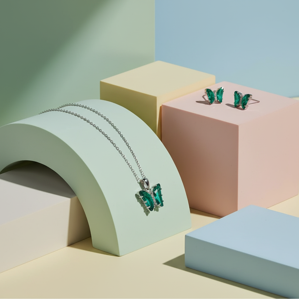 Green Butterfly Silver Set - 2 Pieces