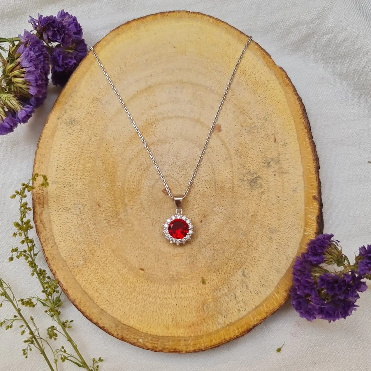 Be bold and take a chance on this Red Zircon Stone 925 Italian Silver Necklace!
