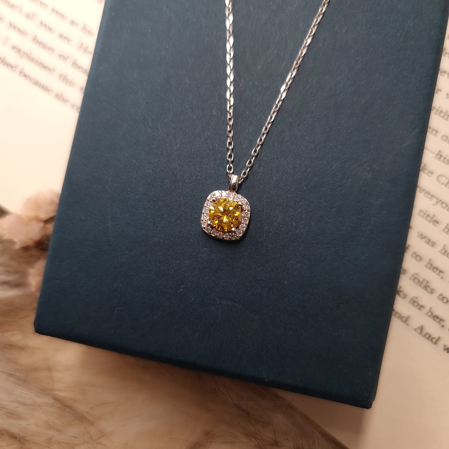 Yellow Zircon Stone 925 Italian Silver Necklace
